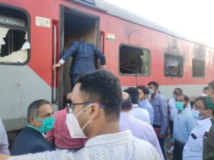 नंदुरबार येथील रेल्वेस्थानकात जवळ गांधीधाम-पूरी एक्सप्रेसच्या पॅन्ट्री कोचला आग लागल्यानंतर सायंकाळी साडेपाच वाजेच्या सुमारास मुंबई सेंट्रल रेल्वेचे प्रबंधक श्री.सत्यप्रकाश नंदुरबार रेल्वे स्थानकावर तांत्रिक विभागाच्या पथकासोबत दाखल झाले.नेमकी आग लागली कशी?याबाबत चौकशी करण्यासाठी रेल्वे प्रबंधकांचे विशेष पथक दाखल झाले होते. पॅन्ट्री कोचमध्ये स्वयंपाक करण्यात येतो.मात्र कोरोनामुळे रेल्वेत पॅन्ट्री बंद आहेत.असे असतांना नेमकी आग शॉटसर्कीट, इलेक्ट्रीक शेगडी कि इतर काही कारणाने लागली याची चौकशी सुरू होती. रेल्वे प्रंबंधक नंदुरबार येथे दाखल झाल्यावर त्यांनी आगीत खाक झालेल्या पॅन्ट्री कारची पाहणी केली.सुमारे अर्ध्या तासापर्यंत रेल्वे प्रबंधकांनी पथकासह पाहणी केली.दरम्यान, घटनास्थळी उपस्थित असणाऱ्या कर्मचाऱ्यांशी चर्चा करत घटनेबाबत माहिती घेतली. रेल्वे प्रबंधकांनी आढावा घेतला असून आता नेमकी काय कारवाई होते याकडे लक्ष लागले आहे.रात्री आठ वाजेच्या सुमारास पश्चिम रेल्वेचे विभागीय प्रबंधक विशेष रेल्वेने परळकडे रवाना झाले.