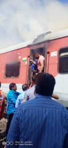 दरम्यान, या रेल्वेच्या बी५ या लगतच्या डब्यात कार्यरत असलेल्या दोन कर्मचार्यांना आग लागल्याचे लक्षात येताच त्यांनी चेन पुलींग केली परंतू त्यात तांत्रिक बिघाड असल्यामुळे रेल्वे थांबली नाही. मात्र, रेल्वे प्रशासनाला मिळालेल्या सिग्नलमुळे सदर रेल्वे थांबवण्यात आली. त्यानंतर त्यांनी प्रवाशांना शांततेचे आवाहन बाहेर येण्यास सांगितले. सुर्दैवाने या अपघातात जिवीतहानी झाली नाही. तब्बल एक ते दीड तास आगीचा हा थरार सुरु होता. घटनास्थळी रेल्वेचे अधिकारी, प्रांताधिकारी मिनल करनवाल, पोलीस निरीक्षक किरणकुमार खेडकर यांच्यासह इतर अधिकारी, कर्मचारी व पोलीसांनी भेट देवून उपाययोजना केल्या.