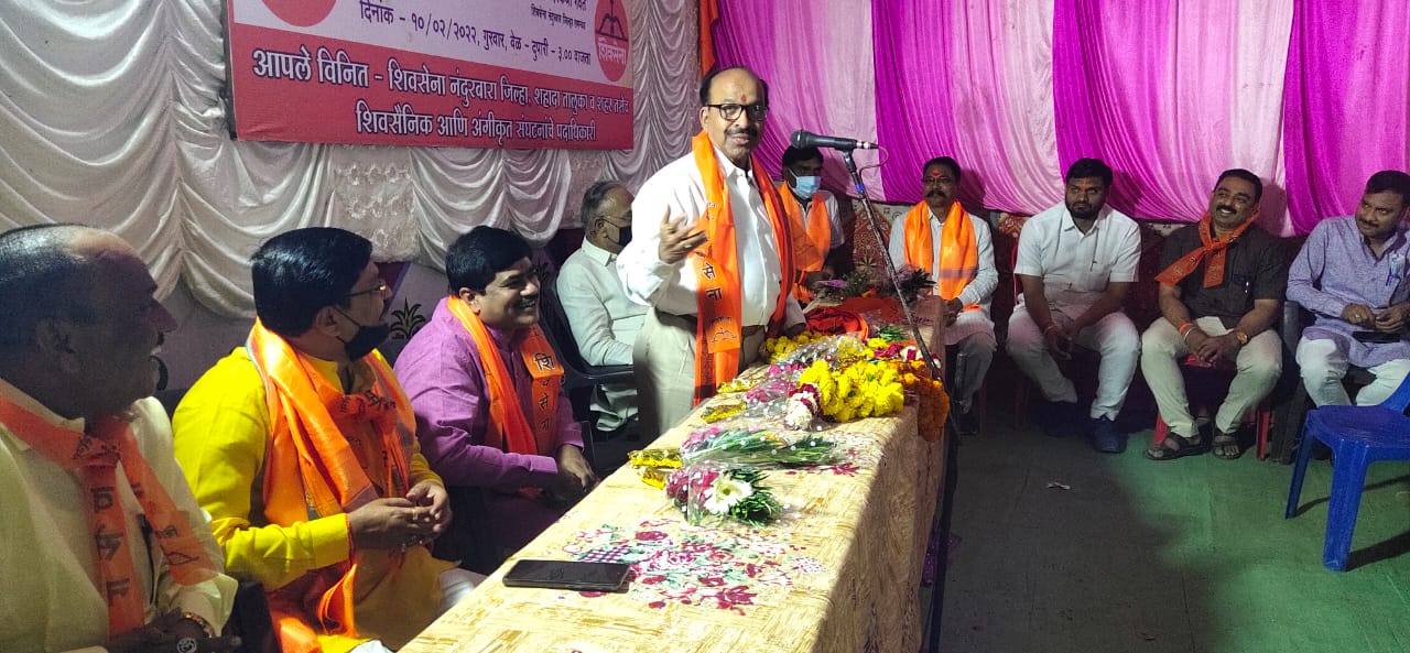 नंदुबार जिल्हा संपर्कप्रमुख बबनराव थोरात शिवसैनिकांना मार्गदर्शन करताना शहादा नगरपालिका निवडणूक शिवसेना लढणार असून शहाद्यात शिवसेनेला जनतेचे सहकार्य मिळेल. गेल्या दोन वर्षांपासून कोरोना विषाणू संक्रमणाशी सामना करताना शिवसेना पक्ष प्रमुख तथा मुख्यमंत्री उद्धव ठाकरे यांनी महत्त्वपूर्ण भूमिका बजावली आहे देशातील टॉप फाइव्ह मुख्यमंत्र्यांमध्ये आपले मुख्यमंत्री उद्धव ठाकरे यांचा समावेश आहे ही गौरवाची बाब आहे शिवसैनिकांनी मेहनती व प्रामाणिक कार्यकर्त्यांच्या पाठीशी सक्षमपणे उभे राहावे कार्यकर्ता मजबूत झाला तर पक्ष मजबूत होईल व सर्वसामान्य जनतेची कामे मोठ्या प्रमाणात होतील असे सांगितले.