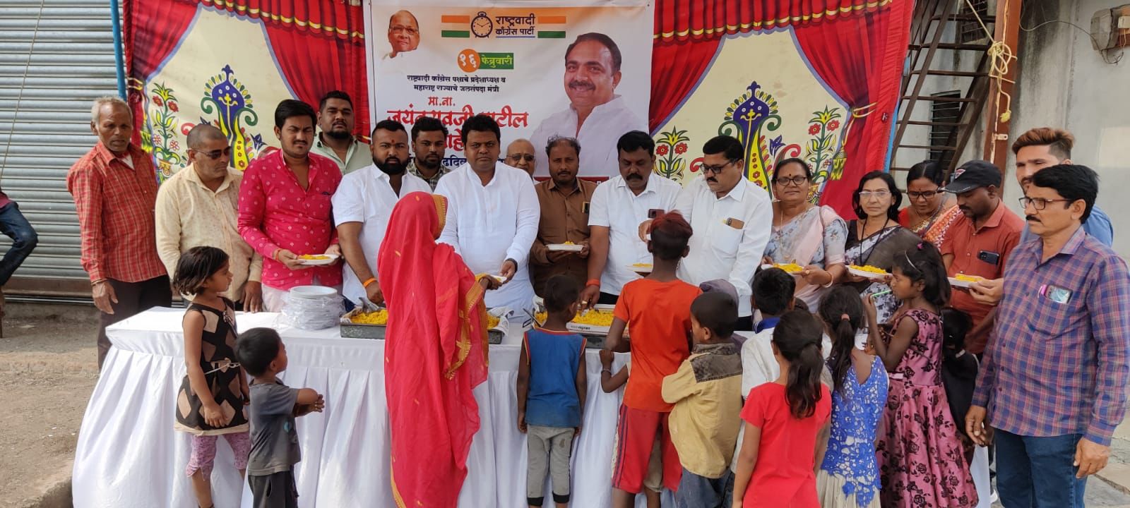 राष्ट्रवादीचे प्रदेशाध्यक्ष तथा राज्याचे जलसंपदामंत्री ना.जयंतराव पाटील यांच्या वाढदिवसानिमित्त राष्ट्रवादी कांग्रेस पार्टी नंदुरबार जिल्हा यांच्या वतीने पक्ष कार्यालय येथे पक्षाचे जिल्हाध्यक्ष डाॅ.अभिजीत मोरे यांच्या हस्ते अन्नदान वाटप करण्यात आले.