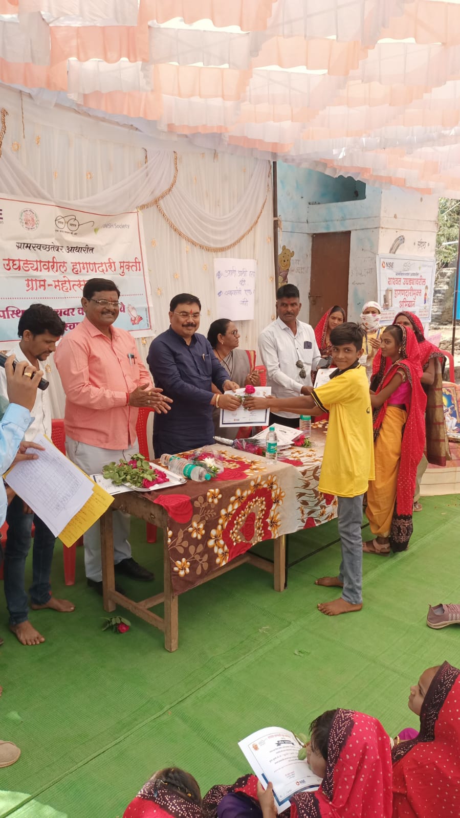 कार्यक्रमास नवापूर मतदार संघाचे आमदार शिरीषकुमार नाईक व सहाय्यक गट विकास अधिकारी, श्रीमती सुवर्णा पवार विस्तार अधिकारी, भैय्यासाहेब निकुंभे यांच्या हस्ते निगराणी सदस्यांनी शाश्वत स्वच्छतेसाठी परिश्रम घेणाऱ्या निगराणी समितीच्या सदस्याचा सन्मानपञ देऊन गौरविण्यात आले. यावेळी गावातील युवतींनी रांगोळीच्या साहाय्याने पाणी ,स्वच्छता , आरोग्य, पर्यावरण संदेश देण्याचा प्रयत्न केला तसेच प्रमुख पाहुण्यांच्या हस्ते वृक्षारोपण करण्यात आले. त्यानंतर निगरानी समितीला पुढील काळात गावामध्ये मासिक पाळी व्यवस्थापन, सांडपाणी आणि घन कचरा व्यवस्थापना संदर्भात कार्य करण्यासाठी प्रोत्साहित करण्यात आले.