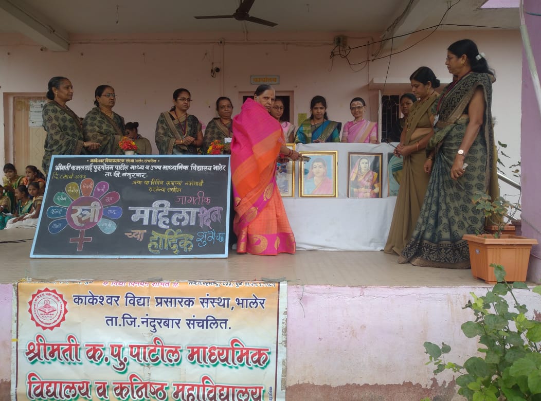 जागतिक महिला दिनाच्या निमित्ताने भालेर येथील श्रीमती क. पू. पाटील माध्य. व उच्च माध्यमिक विद्यालयात जागतिक महिला दिन साजरा करण्यात आला.