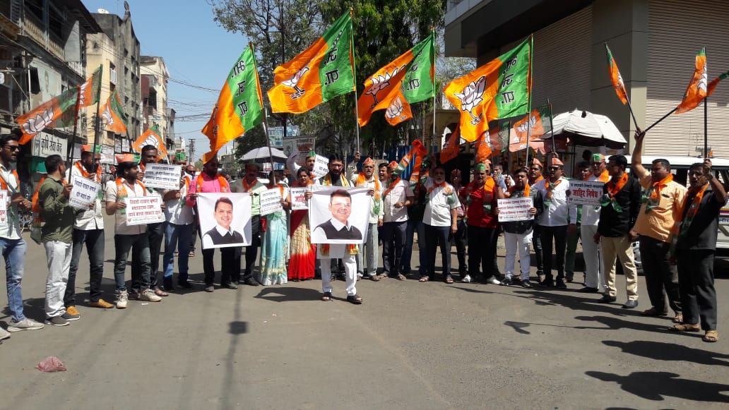 महाराष्ट्राचे विरोधी पक्ष नेते तथा भारतीय जनता पार्टीचे नेते देवेंद्र फडणवीस यांनी महाविकास आघाडीचे कटकारस्थान, षड्यंत्र उघडकीस आणल्याने राजकीय द्वेषापोटी देवेंद्र फडणवीस साहेब यांना महाविकास आघाडीच्या सरकारने कलम 160 प्रमाणे पोलिसांमार्फत नोटीस दिली आहे. याच्या निषेधार्थ आज छत्रपती शिवाजी महाराज यांच्या पुतळ्यासमोर, जुनी नगरपालिका चौक येथे भारतीय जनता पार्टीचे जिल्हाध्यक्ष विजय चौधरी यांच्या नेतृत्वाखाली नोटीस दहन आंदोलन करण्यात आले.
