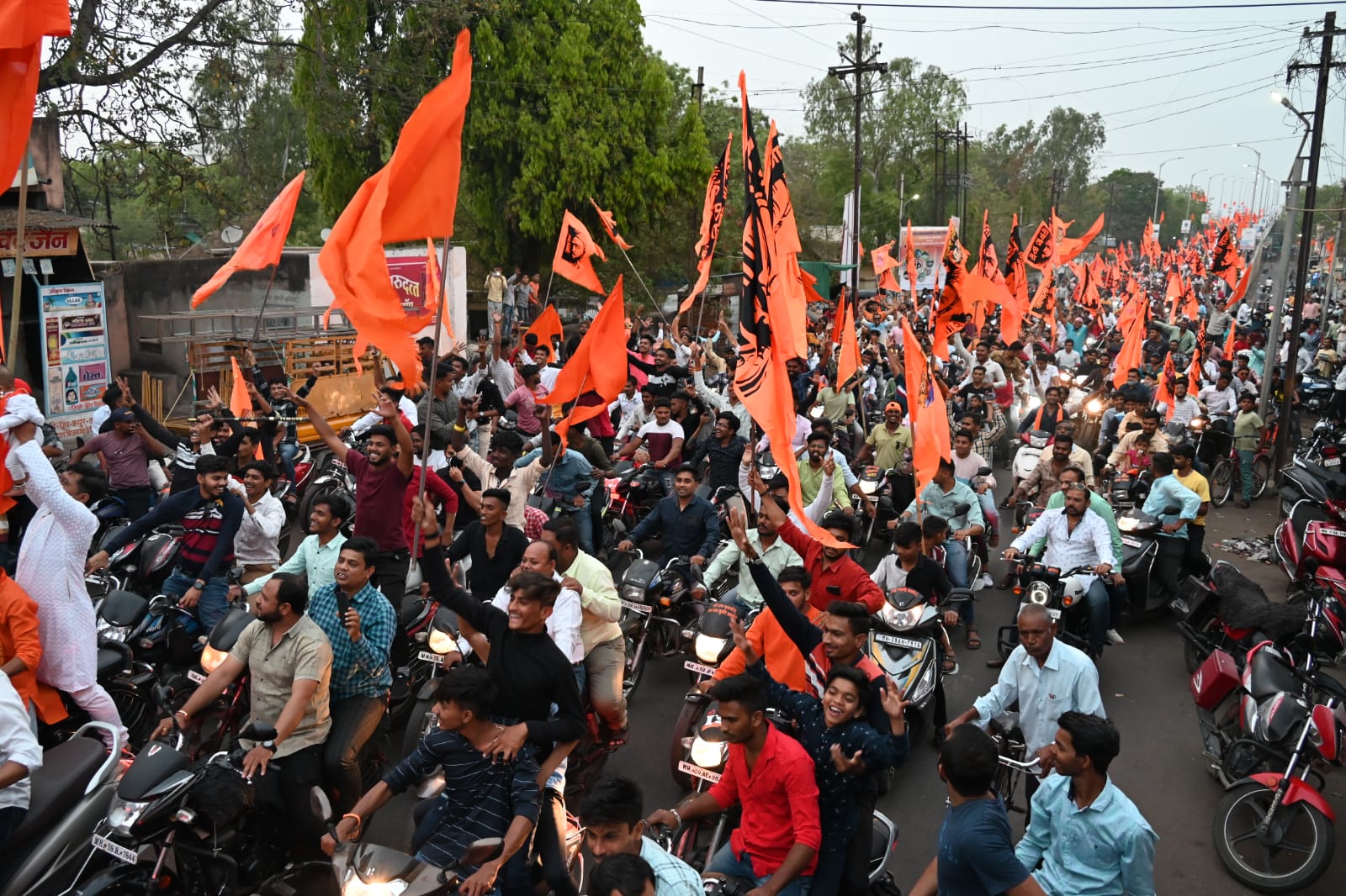 शिवछत्रपती शिवाजी महाराज यांची तिथीनुसार २१ मार्च रोजी साजरा होणार्या शिवजयंतीनिमित्त नंदुरबार शहरात आज पूर्वसंध्येला शिवजयंती उत्सव समितीच्या वतीने जल्लोषात मोटर सायकल रॅली काढण्यात आली. या रॅलीत शिवप्रेमी मोठ्या संख्येने सहभागी झाल्याने मिरवणूक मार्ग शिवप्रेमींनी गजबजला होता.