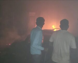 अक्कलकुवा येथील व्यापारी विजय जैन यांच्या सोरापाडा येथील डागा मार्टला लागली आग