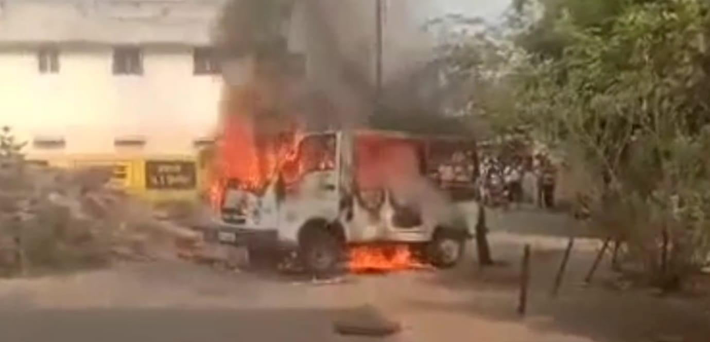 शहरातील जुन्या वसंतराव नाईक विद्यालयाच्या प्रांगणात उभ्या केलेल्या प्रवासी वाहतूक करणाऱ्या व्हॅनला गुरुवारी दुपारी अचानक लागलेल्या आगीत कार पूर्णत: खाक झाल्याची घटना घडली. ही आग कशामुळे लागली हे स्पष्ट झाले नसले तरी वाहनातील शॉर्टसर्किटमुळे आग लागल्याचा प्राथमिक अंदाज वर्तविला जात आहे. सुदैवाने गाडीत प्रवासी नसल्याने मोठी दुर्घटना टळली.
