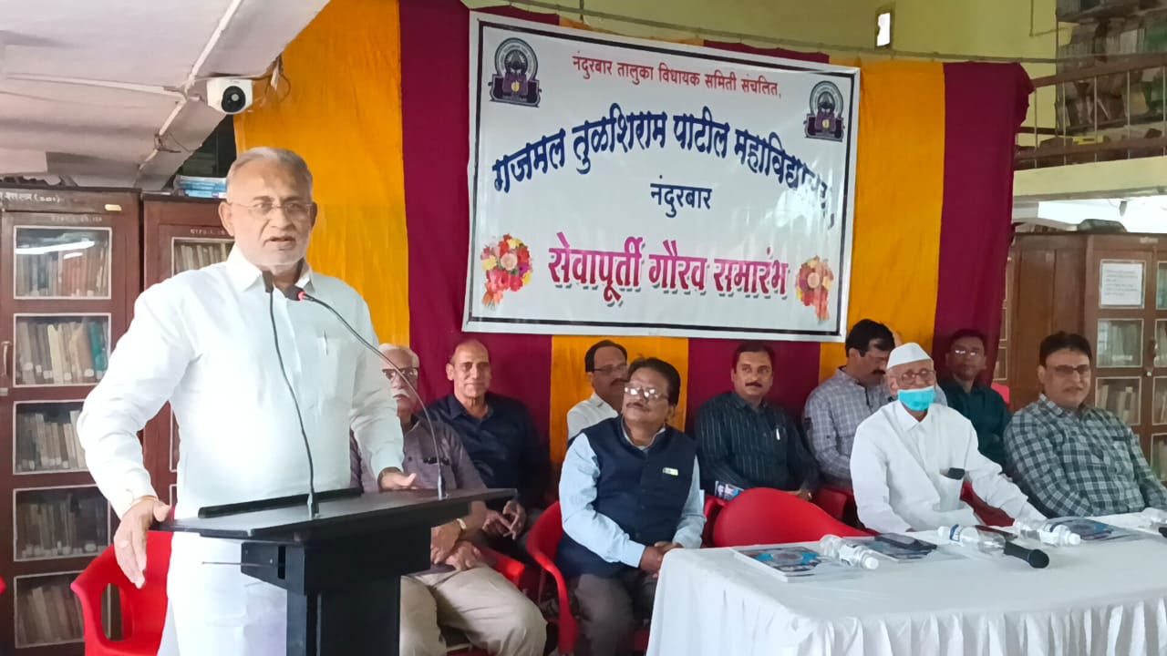 नंदुरबार तालुका विधायक समितीच्या कर्मचाऱ्यांच्या सेवानिवृत्त समारंभाचे गुरुवारी आयोजन करण्यात आले होते. त्याप्रसंगी माजी आ.तथा संस्थेचे चेअरमन चंद्रकांत रघुवंशी बोलत होते. कार्यक्रमाच्या अध्यक्षस्थानी संस्थेचे सरचिटणीस यशवंत पाटील तर प्रमुख पाहुणे म्हणून उपाध्यक्ष मनोज रघुवंशी, समन्वयक डॉ.एम.एस रघुवंशी, प्राचार्य डॉ.व्ही.एस श्रीवास्तव, उपप्राचार्य डॉ एम.जे रघुवंशी, प्रा.डॉ एम.एस रघुवंशी, प्रा एन.जे सोमानी उपस्थित होते.