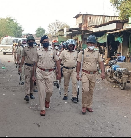 यांच्यासह पोलिस कर्मचारी म्हसावद गावातील मुख्य बाजारपेठ,अहिल्याबाई चौक,कुबेर हायस्कूल च परिसर,तोरणमाळ फ़ात्या आदि ठिकाणी व गर्दी असलेल्या ठिकाणी पथ संचलन करण्यात आले.ग्रामीण भाग व सातपुद्याच्या पायथ्याशी असल्याने नागरिक है संचलन पाहण्यासाठी एकच गर्दी केली होती.
