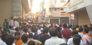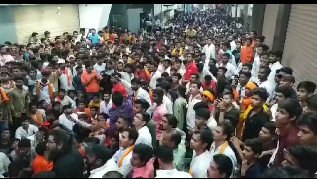 गेल्या दोन वर्षापासून कोरोना मुळे सण उत्सव व मिरवणूकांवर बंदी होती. दोन वर्षानंतर प्रथमच शहरात प्रभू श्रीरामचंद्र जन्मोत्सव समिती बजरंग दल ,विश्व हिंदू परिषद तर्फे मिरवणुकीचे आयोजन करण्यात आले होते. सायंकाळी पाच वाजता शहरातील शहीद लालदास चौकात असलेल्या श्रीराम मंदिरापासून सजवलेल्या रथावर श्रीरामाची भव्य प्रतिमा ठेवून मिरवणूकीला सुरुवात होणार होती.परंतु वाद्यांवरुन पोलिस प्रशासन व हिंदुत्ववादी संघटनांमध्ये वाद झाल्याचे समजते. यावेळी उपस्थित पाच ते सहा हजार राम भक्तांनी पोलीस प्रशासनाच्या विरोधात घोषणाबाजी केली परिस्थिती नियंत्रणाबाहेर जात असताना ज्यादा पोलीस बंदोबस्त मागविण्यात आला रामभक्त ऐकण्याच्या स्थितीत नव्हते. पोलिसांच्या विरोधात चौकात बसून ठिय्या आंदोलन सुरू केले.