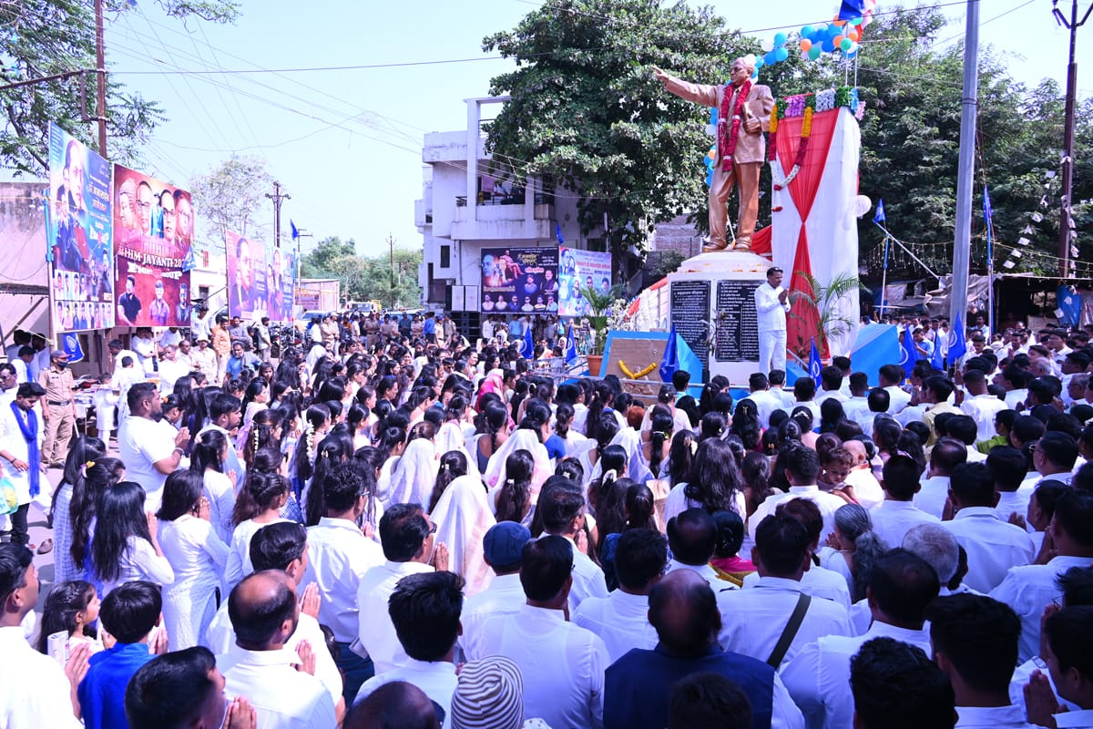 भारतरत्न डॉ. बाबासाहेब आंबेडकर यांच्या १३१ व्या जयंती दिनानिमित्त शहरा सह जिल्ह्यात विवीध सामाजिक संस्था, राजकीय पक्ष, व संघटनांच्या वतीने अभिवादानासह प्रतिमा पूजन, ठिकठिकाणी मिरवणूक तसेच रॅली काढण्यात आली. १४ एप्रिलनिमित्त संपूर्ण शहरात निळ्यारंगाचे ध्वज, पताका, झालर लावण्यात आल्याने शहरात निळ्या वादळाचे उधाण आल्याचे दृश्य दिसून आले. दिवसभर कार्यक्रमात बालके व महिलांची उपस्थिती लक्षणीय होती.