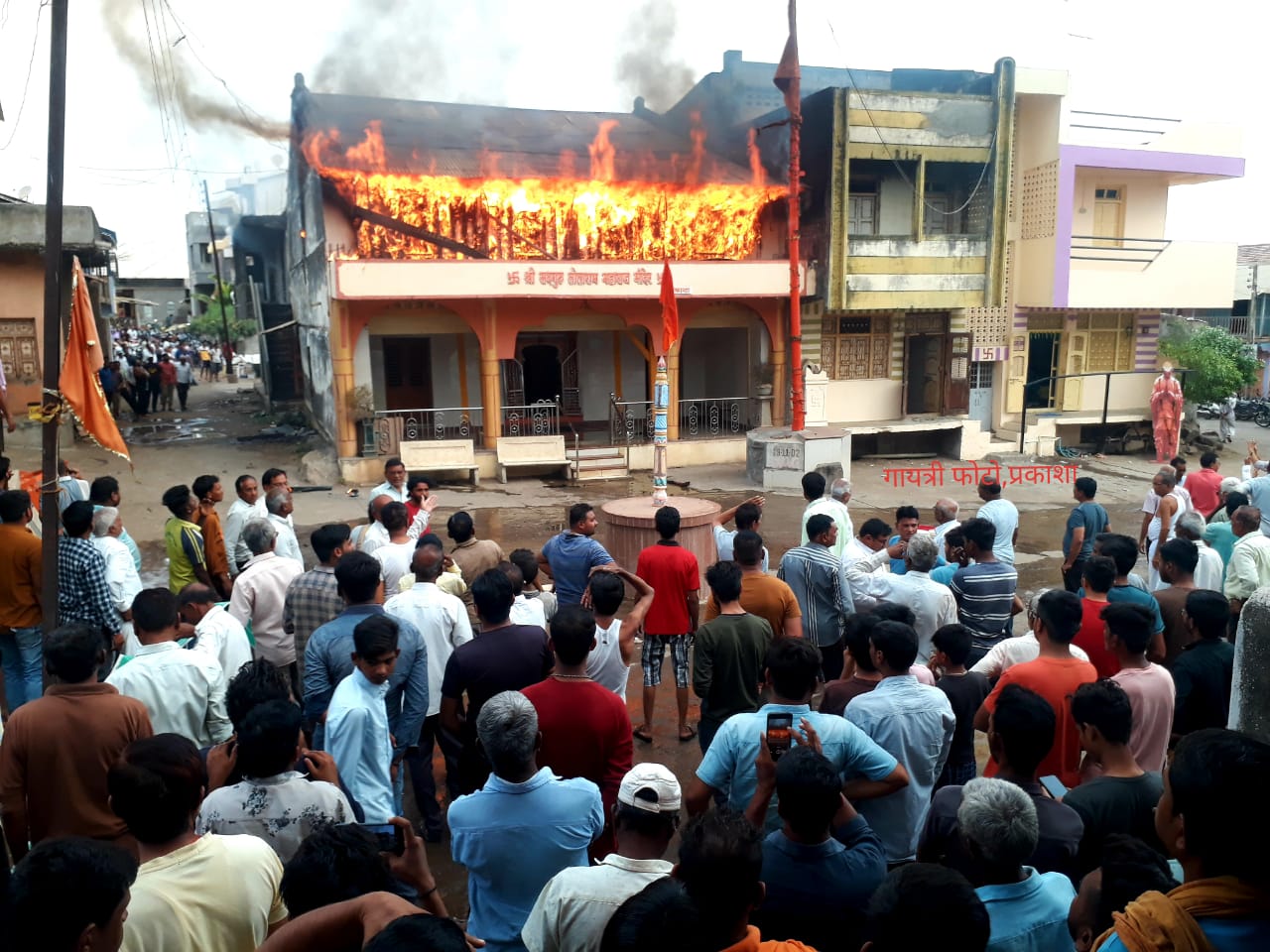 नंदुरबार जिल्ह्यातील शहादा तालुक्यातील प्रतिकाशी म्हणून ओळखल्या जाणाऱ्या प्रकाशा येथील कै. सद्गुरू तोताराम महाराज दोनशे वर्षे पुरातन मंदिरास आज सकाळी सहा ते साडेसहा वाजेच्या दरम्यान मंदिराच्या वरील बाजूस मंदिराचे पुजारी दिक्षित वास्तव्य करीत असलेल्या भागास अचानक आग लागल्याने परिसरात एकच धावपळ उडाली होती,प्रकाशा गावातील मध्यवर्ती ठिकाणी असलेल्या या तोताराम महाराज मंदिराच्यावरील भागात आग लागल्याचे कळताच परिसरातील नागरिकांनी धाव घेत सदर मंदिराचे पुजारी हे वरील भागात राहत असल्याने त्यांना मंदिराच्या आपण वास्तव्य करीत असलेल्या वरच्या भागात काहीतरी जळत असल्याचे भास होतात त्यांनी उपस्थित ग्रामस्थांना याची माहिती देताच नागरिकसह प्रकाशा सरपंच, उपसरपंच भरत पटेल घटनास्थळी दाखल झाले.काही वेळातच याआगीने मोठे रुद्ररूप धारण केले होत.मोठ्या प्रमाणात आग पसरून मोठे नुकसान झाले आग ही सकाळी जवळपास एक ते दोन तास धुमसत राहिले आगीची माहिती तात्काळ शहादा येथील अग्निशामक दलाला देण्यात येऊन तेथून अग्निशमन बंब तात्काळ पाचारण करण्यात येऊन आग विझविण्यासाठी शर्थीचे प्रयत्न करण्यात आले तसेच शहादा अग्निशमन येथील बंबा समवेतच नंदुरबार येथून देखील आगीवर नियंत्रण मिळविण्यासाठी अग्निशमनबंबला पाचारण करण्यात आले होते सुमारे दोन ते तीन तासाच्या अथक प्रयत्न केल्यानंतर ही आग आटोक्यात आली असून मंदिराचा वरचा भाग व खालचा काही भाग या आगीत जळून खाक झाल्याने मंदिराचे मोठे नुकसान झाल्याचा प्राथमिक अंदाज वर्तविण्यात येत आहे, एकंदरीतच नंदुरबार जिल्ह्यात मंदिरास आग लागण्याची ही पहिलीच घटना घडली आहे याबाबत शहादा महसूल प्रशासनाकडून सदर घटनेची सखोल चौकशी करत पंचनामा करण्याची कार्यवाही सुरू आहे.तर सदर आगीच्या घटनेत मंदिराचा बराचसा भाग संपुर्णपने जळून खाक झाला आहे.