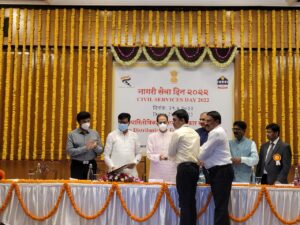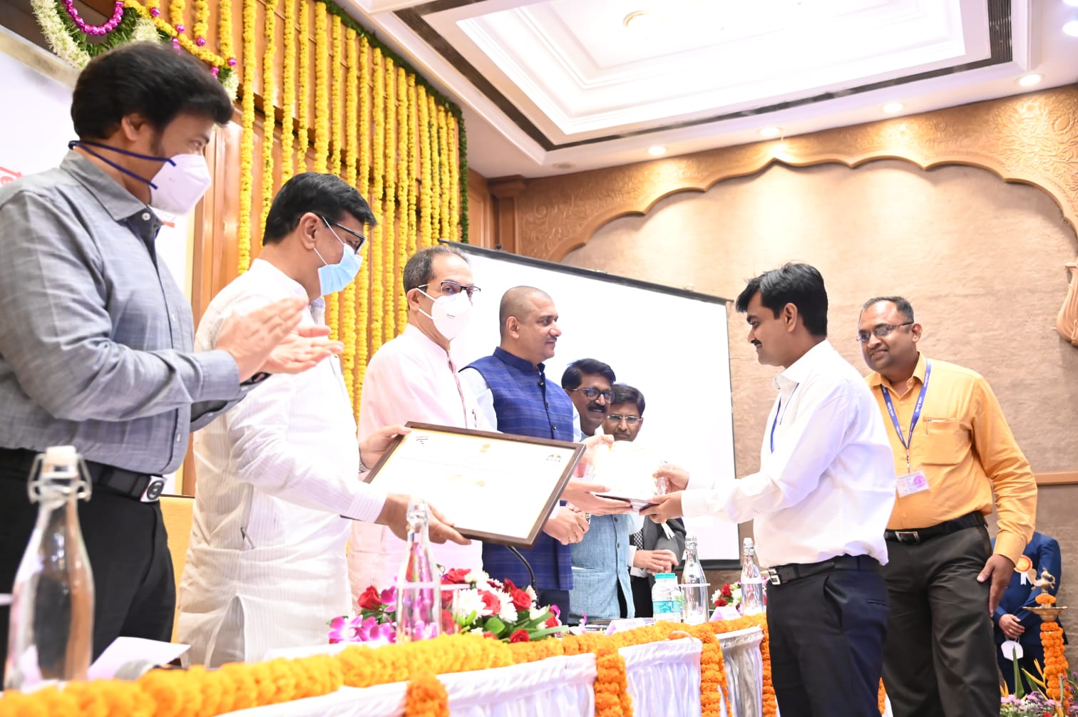 राजीव गांधी प्रशासकीय गतिमानता (प्रगती) अभियान व स्पर्धा 2021- 22 मध्ये सर्वोत्कृष्ट कल्पनातंर्गत शासकीय संस्था गटात तहसिलदार गिरीष वखारे, तहसिलदार मंदार कुळकर्णी यांना आज मुंबई येथे मुख्यमंत्री उद्धव ठाकरे यांच्या हस्ते पुरस्काराने सन्मानित करण्यात आले.