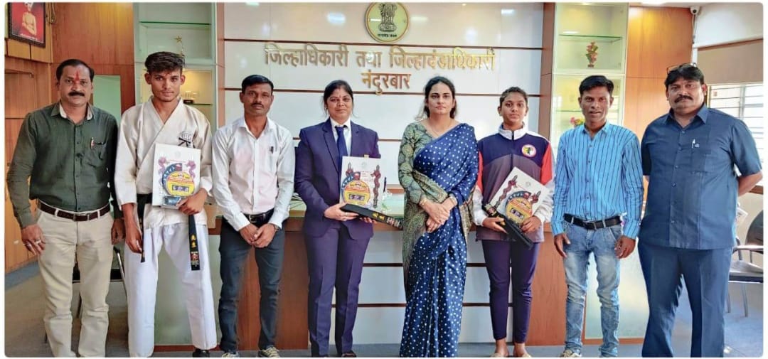 ऑल नंदुरबार जिल्हा कराटे असोसिएशन व इंडियन ऍडव्हेंचर स्पोर्ट्स क्लब यांच्या संयुक्त विद्यमाने नुकत्याच एस.ए.मिशन हायस्कूल येथे घेण्यात आलेल्या ब्लॅक बेल्ट कराटे परीक्षेत नवापुर येथील वनिता हायस्कूलच्या कराटे प्रशिक्षिका श्रीमती ज्योती चौधरी व शिरपूर येथील आर.सि.पटेल हायस्कूलच्या कराटे प्रशिक्षिका रेश्मा बाळू मराठे या दोघी महिलांनी ब्लॅक बेल्ट परीक्षेत यश संपादन केले. त्यांच्या यशस्वी कामगिरी बद्दल जिल्हाधिकारी मनिषा खत्री यांनी निर्भया महिलांचा प्रमाणपत्र व सन्मानचिन्ह देऊन सत्कार केला व पुढील वाटचालीसाठी शुभेच्छा दिल्या.