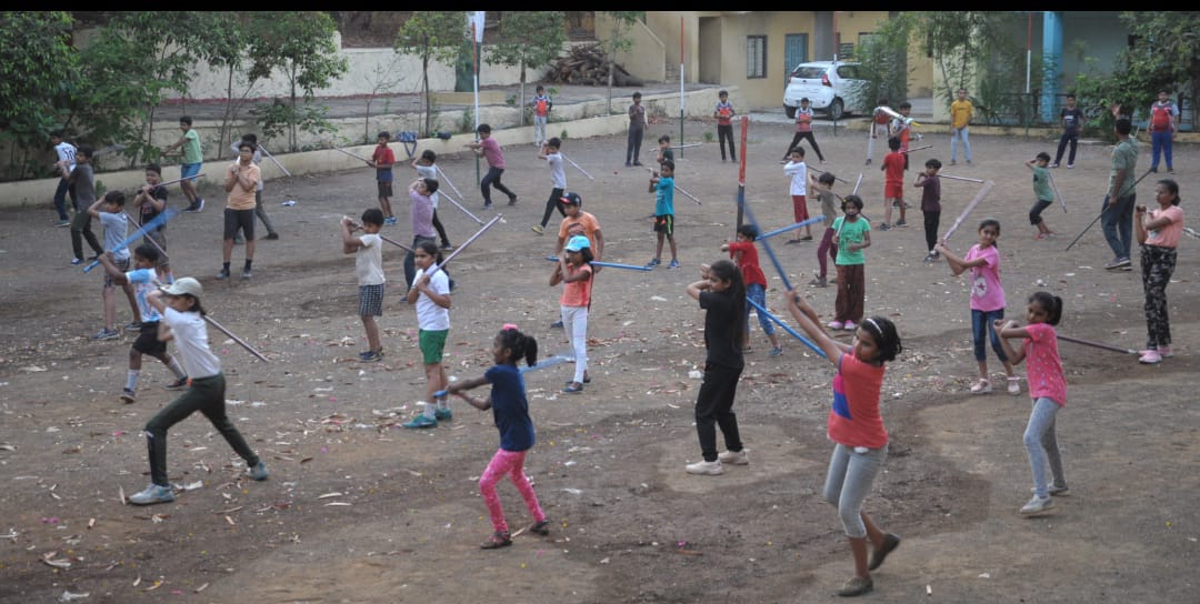 नंदुरबार येथील जिल्हा क्रीडा अधिकारी कार्यालय व श्रॉफ स्पोर्ट्स क्लब, क्रीडा व युवक सेवा संचालनालय महाराष्ट्र राज्य पुणे अंतर्गत यांच्या संयुक्त विद्यमाने मधली सुट्टी उन्हाळी प्रशिक्षणार्थी प्रशिक्षण शिबिराचे आयोजन दि.५ ते २० मे दरम्यान हि.गो.श्रॉफ हायस्कूल मध्ये आयोजित करण्यात आले आहे. या प्रशिक्षण शिबिरामध्ये कला व क्रीडा यात फुटबॉल, क्रिकेट, बुद्धिबळ,बॉक्सिंग प्रशिक्षण घेण्यात येत आहे. यात आज लाठी काठी चालविण्याचे प्रशिक्षण घेण्यात आले. यावेळी राजेश शाह, संजय माळी, सागर माळी, अभय माळी यांनी लाठीकाठी प्रशिक्षण दिले.या या प्रशिक्षण शिबीर यशस्वीतेसाठी क्रीडाशिक्षक जगदीश वंजारी,शिवाजी माळी, जितेंद्र माळी,परिश्रम घेत आहेत.