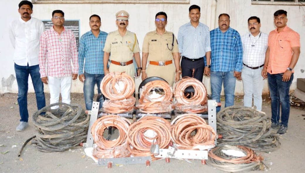 याबाबत अधिक माहिती अशी कि, दि .१० मे रोजीच्या रात्री बलवंड गावाच्या शिवारातील सुझलॉन कंपनीचे टॉवर येथून १ लाखाचे पवन चक्कीत वापरात येणारी ५२५ मीटर ताब्यांची केबल अज्ञात चोरट्यांनी चोरून नेल्याने वना भावराव पाटील यांच्या फिर्यादीवरून नंदुरबार तालुका पोलीस ठाण्यात गुन्हा नोंद करण्यात आला होता . तसेच दि . ११ मे रोजी नंदुरबार तालुका पोलीस ठाणे हद्दीतील ढंढाणे गावाचे शिवारादेखील सुझलॉन पवन उर्जा कंपनीचे टॉवर मधील ट्रान्सफॉर्मर बॉक्समधून १० हजाराची ताब्यांच्या बसबार पट्टया अज्ञात चोरट्यांनी चोरून नेल्याने तुकाराम सुकदेव झावरे यांच्या फिर्यादीवरून नंदुरबार तालुका पोलीस ठाण्यात गुन्हा नोंद करण्यात आला होता . तसेच दि . १२ मे रोजी तिलाली शिवारातील टॉवर मधून २५ हजाराची ५० मीटर तांब्याची वायर कोणीतरी अज्ञात चोरट्यांनी चोरी केल्याने राजेंद्र चिंतामण पाटील यांच्या फिर्यादीवरुन नंदुरबार तालुका पोलीस ठाण्यात गुन्हा दाखल करण्यात आला होता .पोलीस अधीक्षक पी . आर . पाटील यांना गुप्त बातमीदारामार्फत बातमी प्राप्त झाली , गुन्हयातील चोरीस गेलेली ताब्यांच्या बसबार पट्टया ह्या रजाळे येथील पवन ऊर्फ प्रशांत कोळी व त्याचे मित्र यांनी मिळून चोरी केल्या आहेत .सदर बातमी मिळाल्यावरुन पोलीस अधीक्षक पी . आर . पाटील यांनी तपासाबाबत स्थानिक गुन्हे शाखेचे एक पथक तयार करुन गुन्ह्यात सहभाग असलेले सर्व आरोपी व गुन्ह्यातील चोरीस गेलेला माल विकत घेणारे यांची माहिती काढुन कायदेशीर कारवाई करण्याबाबत आदेशीत केले . मिळालेल्या बातमीप्रमाणे स्थानिक गुन्हे शाखेचे पोलीस निरीक्षक रविंद्र कळमकर यांनी स्थानिक गुन्हे शाखेचे एक पथक तात्काळ रजाळे व ढंडाणे येथे पाठवुन संशयीतास ताब्यात घेण्याबाबत सुचना दिल्या . स्थानिक गुन्हे शाखेच्या पथकाने रजाळे गावात संशयीत आरोपी पवन कोळी याचा शोध घेतला असता तो त्याच्या शेतातुन पवन ऊर्फ प्रशांत युवराज कोळी, सुकदेव आंनदा कोळी, शेरसिंग ऊर्फ पिन्या चंदु टाकरे तीघे रा . ढंढाणे, ता.नंदुरबार असे सांगीतले . त्यांना सुझलॉन तार चोरी बाबत विचारपुस केली त्यांनी दि.११ मे रोजी ढंडाणे गावाचे शिवारातील सुझलॉन पवन उर्जा कंपनीचे टॉवरमधील ट्रान्सफॉर्मर बॉक्समधून चोरी केल्याचे मान्य केल्याने पवन ऊर्फ प्रशांत युवराज कोळी यांच्याकडून १० हजार रुपये किंमतीचे ताब्यांच्या बसबार पट्ट्या कायदेशीर प्रक्रिया करुन हस्तगत केले . सदर संशयीत आरोपींकडे अधिक विचारणा केली असता त्यांनी त्यांचे इतर साथीदारांसह इतर काही गुन्हे केले असल्याचे कबुल करुन त्याच्या इतर साथीदारांबाबत माहीती दिली . त्यामुळे त्यांचे साथीदरांपैकी देविदास भाईदास भिल , रा . शनिमांडळ ( तिलाली ) , हिरा