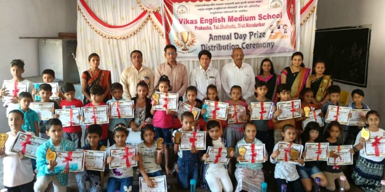 प्रकाशा येथील विकास इंग्लिश मीडियम स्कूल मध्ये गेल्या दोन वर्षापासून कोरोनामुळे कार्यक्रम होऊ शकला नव्हता मात्र दिवाळीनंतर शाळा उघडली. त्यावेळी विद्यार्थ्यांच्या सर्वांगीण विकासासाठी विविध उपक्रम राबवले गेले. त्या सर्व यशस्वी विद्यार्थ्यांच्या पारितोषिक वितरण सोहळा घेण्यात आला.