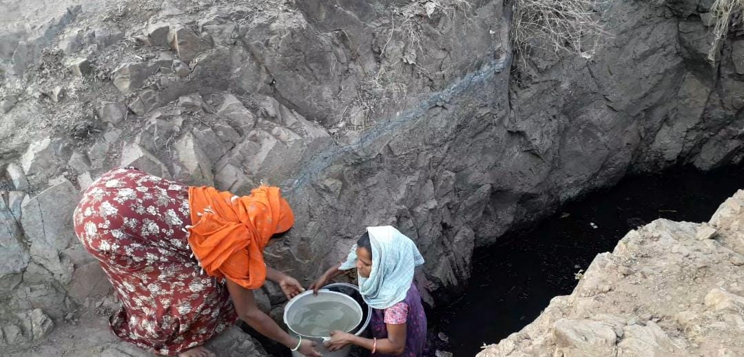 मे महिन्याच्या अखेरीस नैसर्गिक झरे आटत आली असल्याने गढूळ दूषित पाणी पिऊन नागरिकांना तहान भागवावी लागत आहे.