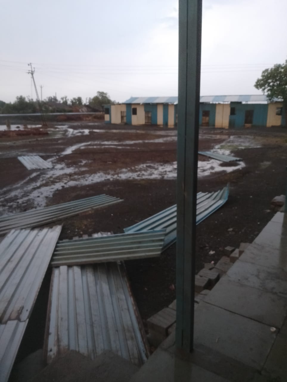 काल आलेल्या वादळाने आमच्या अनुदानित आश्रमशाळेचे अधीक्षक गृह, कोठी गृह व प्राथमिक व माध्यमिक वर्ग भरत असलेल्या इमारतीचे पत्रे उडाले, त्यामुळे लाखोंचे नुकसान झाले आहे,
