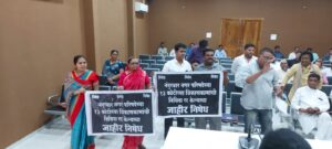 दरम्यान काल झालेल्या सर्वसाधारण सभेत भाजपाच्या नगरसेवकांनी बॅनर बाजी करत सत्ताधारी पक्षाच्या विरोधात जोरदार घोषणाबाजी केली आहे. नगर परिषदेने १४ कोटींच्या कामांची निविदा प्रक्रीया रद्द केल्याच्या निषेधार्थ भाजपाच्या वतीने पालीकेच्या सर्वसाधरण सभेत बॅनर झळकवण्यात आले.