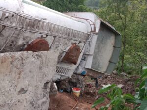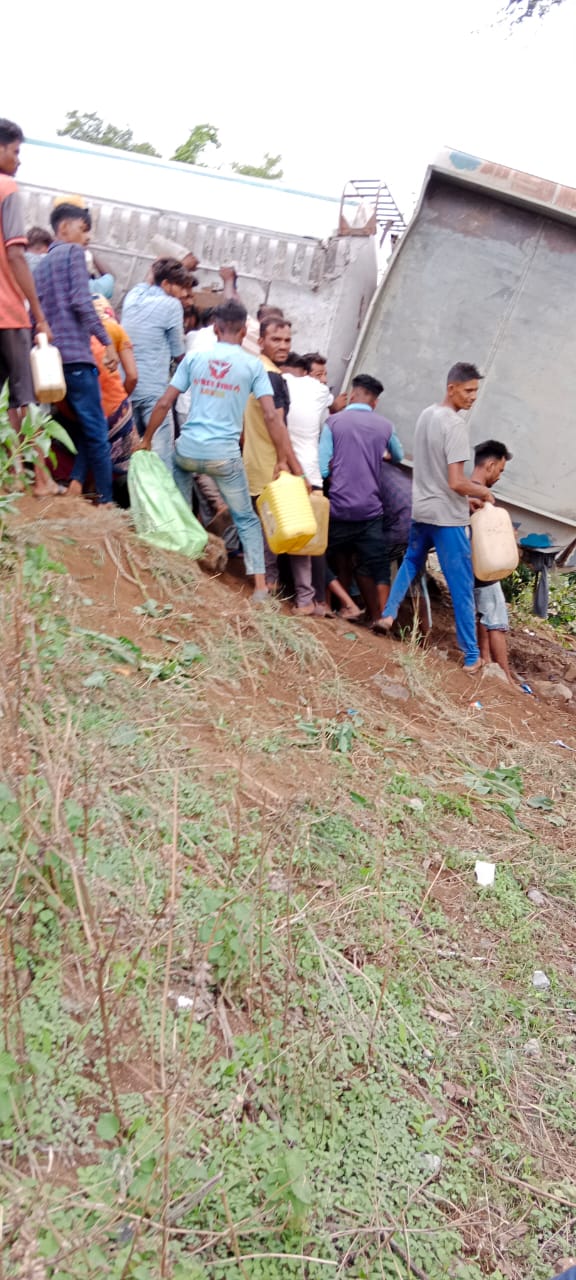 चरणमाळ घाटात डिझेल टँकरचा अपघात, नागरिक धावले मिळेल ते भांडे घेऊन पेट्रोल व डिझेल भरण्यासाठी