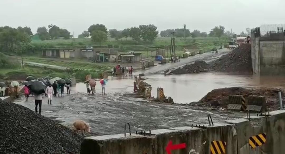 नवापूर तालुक्यात पावसाला सुरुवात झाली असून राष्ट्रीय महामार्ग क्रमांक सहा वरील विसरवाडी गावाजवळ सरपणी नदीवरील पूल वाहून गेल्याने महामार्ग बंद झाला आहे.