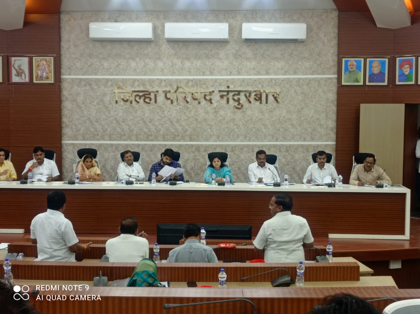 नंदुरबार जि.प.ची स्थायी समिती सभा जि.प.च्या याहामोगी सभागृहात संपन्न झाली. यावेळी अध्यक्षा ॲड.सीमा वळवी, उपाध्यक्ष ॲड.राम रघुवंशी, समाज कल्याण सभापती रतन पाडवी, महिला बालकल्याण सभापती निर्मला राऊत, सभापती गणेश पराडके, अजित नाईक, मुख्य कार्यकारी अधिकारी रघुनाथ गावडे, अतिरीक्त मुख्य कार्यकारी अधिकारी प्रमोद पवार, उपमुख्य कार्यकारी अधिकारी राजेंद्र पाटील आदी उपस्थित होते.