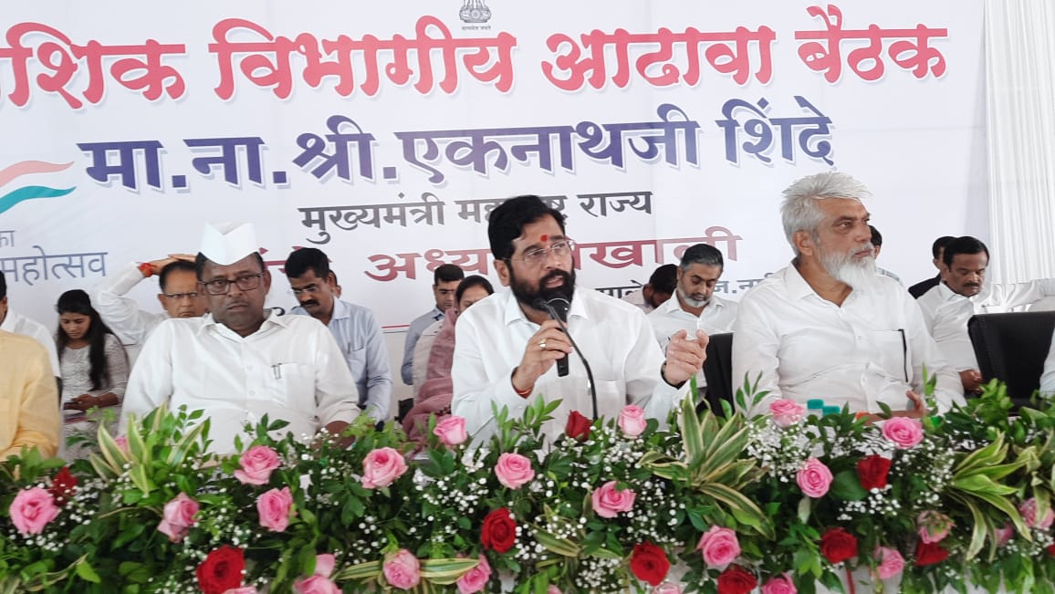 मालेगाव येथील तालुका क्रीडा संकुलात आज सकाळी नाशिक विभागाच्या आढावा बैठकीचे आयोजन करण्यात आले होते. त्यावेळी मुख्यमंत्री शिंदे बोलत होते. या बैठकीस विधानसभेचे उपाध्यक्ष नरहरी झिरवळ, खासदार हेमंत गोडसे, आमदार सर्वश्री दादाजी भुसे, गुलाबराव पाटील, मौलाना मुफ्ती मोहंमद इस्माईल, चिमणराव पाटील, किशोर पाटील, चंद्रकांत पाटील, बबनराव पाचपुते, दिलीप बोरसे, डॉ. राहुल आहेर, नितीन पवार, सुहास कांदे, फारुक शाह, आमदार श्रीमती मंजुळाताई गावित, लताताई सोनवणे, नाशिक विभागाचे महसूल आयुक्त राधाकृष्ण गमे, जिल्हाधिकारी गंगाथरण डी. (नाशिक), नाशिक विभागाचे विशेष पोलिस महानिरीक्षक बी. जी. शेखर-पाटील, नाशिकचे पोलिस आयुक्त जयंत नाईकनवरे, जिल्हा परिषदेच्या मुख्य कार्यकारी अधिकारी लीना बनसोड (नाशिक), यांच्यासह विविध विभागातील वरीष्ठ अधिकारी उपस्थित होते.