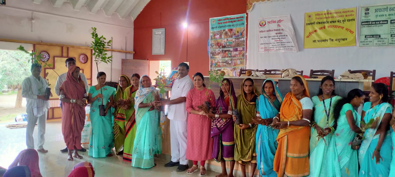 मातृसत्ताक आदिवासी समाजातील महिला ह्या पुरुषांच्या खांद्याला खांदा लावून प्रत्येक कामात योगदान देत आल्यात, वृक्षलागवडीतही त्या मागे राहिल्या नाही. महिलांची ही पर्यावरण रक्षण व संवर्धनातील भूमिका लक्षात घेत धडगावात अक्काराणी लोकसंचलित साधन केंद्राच्या सभेनिमीत्त सातपुडा ग्रीन व्हॅली ॲग्रीकल्चर प्रोड्युसर कंपनीतर्फे ६० हजार रोप वाटप करण्यात आले. यावेळी माजी मंत्री ॲड. पद्माकर वळवी, महिला आर्थिक विकास महामंडळाचे सहनियंत्रण अधिकारी मिलींद पाटील, वाण्या वळवी, रमेश वसावे, सातपुडा ग्रीन व्हॅली ॲग्रीकल्चर प्रोड्युसर कंपनीच्या निशाताई वळवी, आयसीआयसीआय बँकेचे बोरसे, अक्काराणी सीएमआरसीच्या मॅनेजर सुरेखा तडवी, अध्यक्षा सुरजाबाई वसावे, सचिव जमुना पावरा, तोरणा सीएमआरसीच्या रमिला वसावे, खात्रीबाई वळवी, अशा वळवी, कविता वळवी, रमकबाई पावरा, जानू वळवी, सिता पाडवी, बामणीबाई वळवी आदी उपस्थित होते. यावेळी ढासळत्या पर्यावरणाबाबत चिंता व्यक्त करतांना वाण्या वळवी यांनी सातपुड्याला गतवैभव मिळवून देण्यासाठी कुठलीही पर्वा न करता झटणारे ॲड. वळवी हे आपण सर्वांचे काळजीवाहू बंधू असल्याचे म्हटले. कार्यक्रमांसाठी निलीषा पाडवी, सेवी पावरा, लता पवार, कल्पेश पावरा यांनी परिश्रम घेतले.