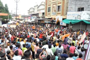 कोरोनाच्या दोन वर्षानंतर प्रथमच दहीहंडी निर्बंध मुक्त साजरी करण्यात आली. शांतीसागर सुपडू पैलवान मराठे यांच्या जय बजरंग व्यायाम शाळेच्या वतीने दहीहंडी महोत्सवाचे आयोजन करण्यात आले होते. प्रारंभी खंडेश्वरी बाबा (सौराष्ट्र) यांच्या हस्ते दहीहंडीचे विधिवत पूजन करण्यात आले. भागवताचार्य प.पु अविनाश जोशी,पोलीस निरीक्षक किरणकुमार खेडकर यांच्या हस्ते श्रीकृष्ण प्रतिमेचे पूजन झाले.