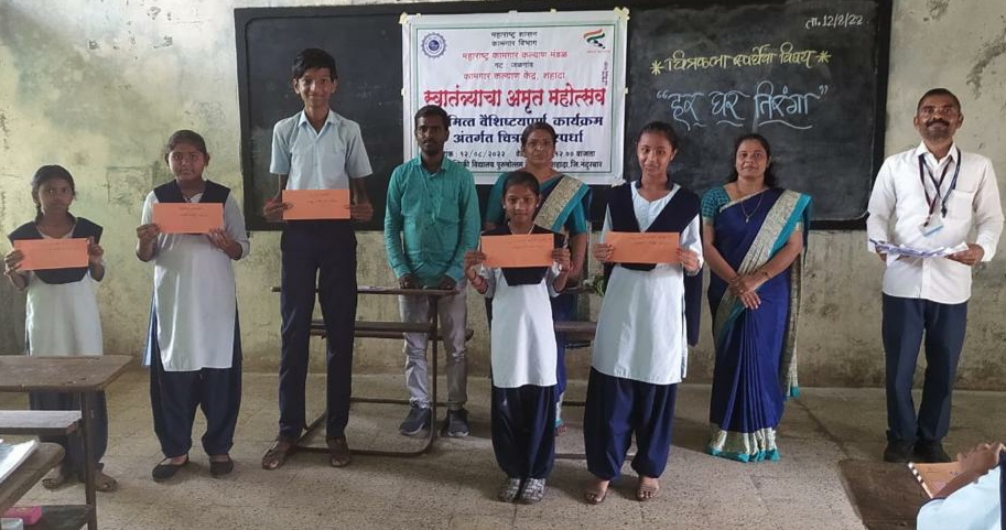 महाराष्ट्र शासन कामगार विभाग, कामगार कल्याण मंडळ गट जळगांव- कामगार कल्याण केंद्र शहादाच्या वतीने आयोजीत ‘स्वातंत्र्याचा अमृत महोत्सव-हर घर तिरंगा ‘ चित्रकला स्पर्धेत वाल्मिकी माध्यमिक विद्यालय पुरुषोत्तम नगरच्या विद्यार्थ्यांनी घवघवीत यश संपादित केले आहे.