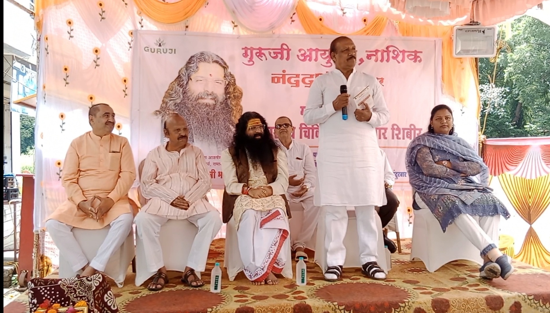 नंदुरबार येथील पारेश्वर मेडिकलच्या शुभारंभानिमित्त गुरुजी आयुर्वेद नाशिक यांच्या वतीने प.पु.पंडित अतुलशास्त्री भगरे गुरुजी यांच्या मार्गदर्शनाखाली आयोजित मोफत आयुर्वेदिक आरोग्य चिकित्सा व उपचार शिबिराचा शुभारंभ झाला. यावेळी राज्याचे आदिवासी विकास मंत्री ना.डॉ.विजयकुमार गावित, खा.डॉ.हिना गावित, भागवताचार्य पंडित अतुलशास्त्री भगरे गुरुजी यांच्या हस्ते दीपप्रज्वलनाने आयुर्वेदिक आरोग्य चिकित्सा व उपचार शिबिराचे उद्घाटन झाले.
