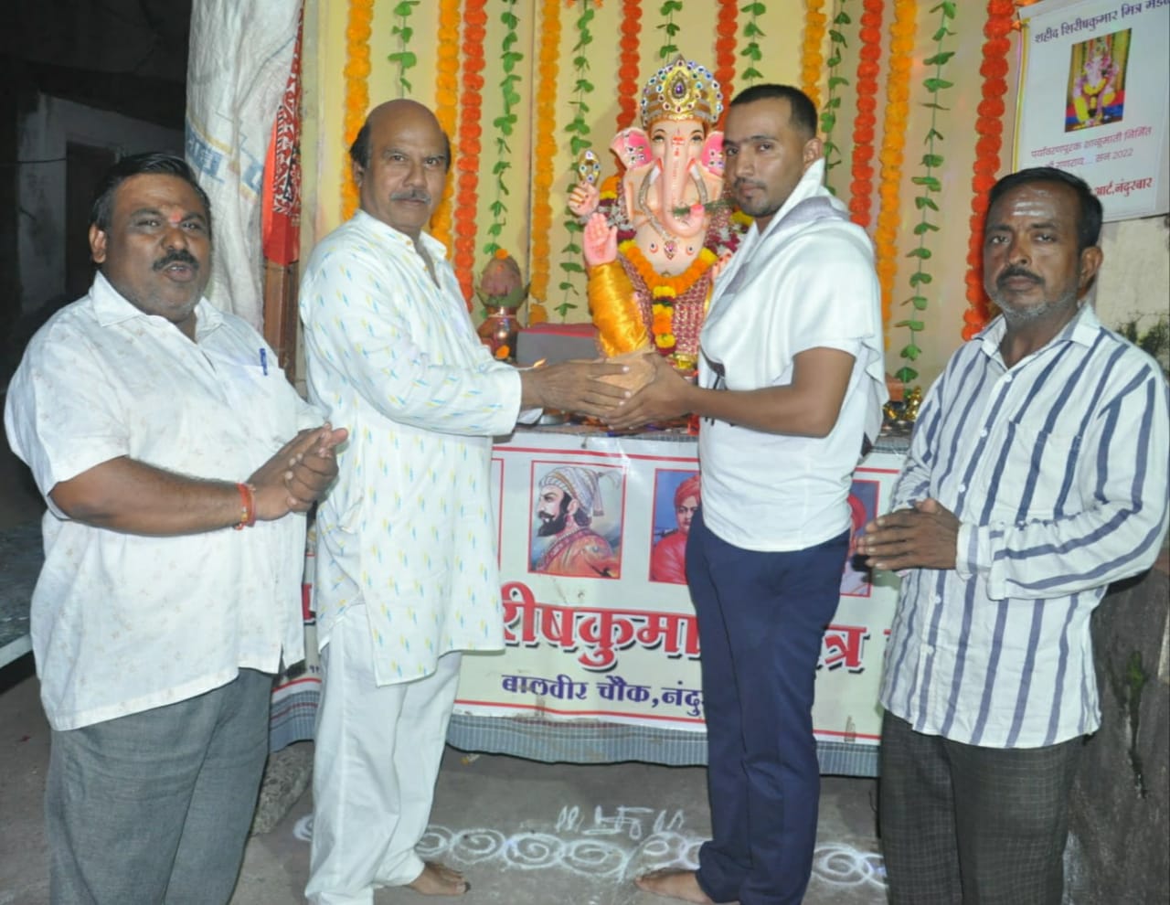 यावेळी दर्शन सोनार यांच्या हस्ते शहीद शिरीष कुमार मित्र मंडळाच्या श्री गणरायाची आरती करण्यात आली. प्रसाद वाटपानंतर उपस्थित महिला भाविकांनी हळदी कुंकू समारंभ केला.