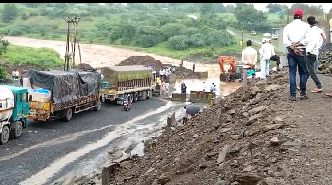 प्रवासी, वाहन चालक रस्त्यावर अडकून पडले आहे. महामार्गवर वाहनांच्या रांगा लागल्या आहेत. अंतरराज्यीय महामार्गावर वाहतूक ठप्प होणे मोठी समस्या बनली आहे या समस्या ला म्हात्रे कंपनी जबाबदार आहे. विसरवाडी पोलिस ठाण्याचे सहाय्यक पोलीस निरीक्षक नितीन पाटील ,पोलीस उप.निरिक्षक भुषण बैसाणे, पो.हे.कॉ.दिनेश चित्ते, अनिल राठोड,हेमंत खाडे ,लिनेश पाडवी ,पिंटु पावरा, विशाल गावीत , दारासिंग पावरा राजु कोकणी ,महामार्ग सुरक्षा पथकाचे सहाय्यक पोलीस निरीक्षक राहुल शेजवळ हे.कॉ.नुर पिंजारी, किशोर बागुल दिपक चौधरी यांनी परिश्रम घेवुन नंदुरबार , पिंपळनेर ,नवापूर मार्गे वाहतूक वळविली आहे.सध्या विसरवाडी परिसरात पावसा जोर कायम आहे ,सरपनी नदीचे पात्र 200 फुट लांबीचा असुन देखील म्हात्रे कंपनी कडून ,व्यवस्थित पाहणी न करता एक लहान पर्यायी रस्ता नदी मध्ये चार सिंमेट पाईपे टाकुन त्यावर मरुम माती टाकून तयार केला आहे.