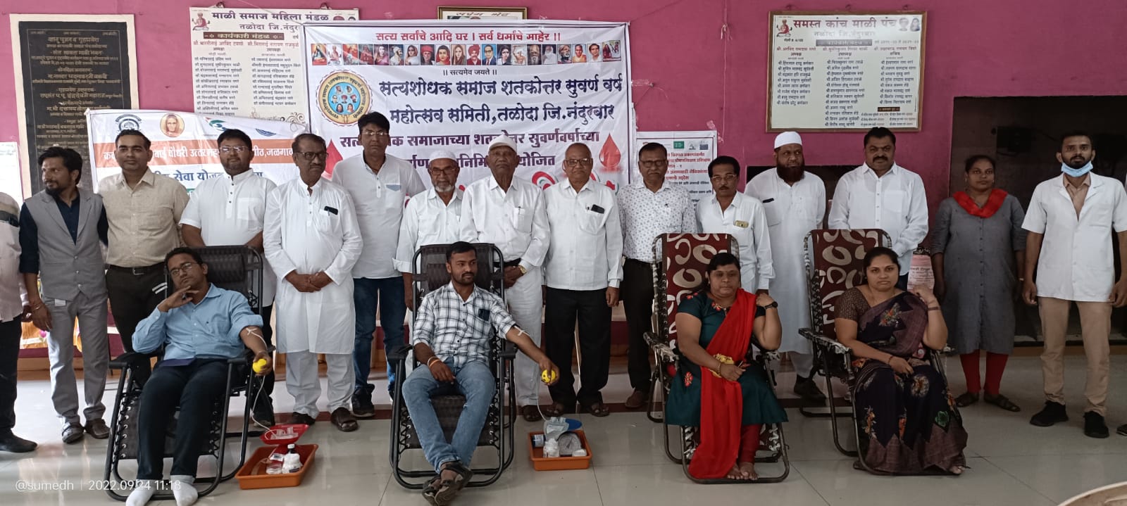 महात्मा फुले यांनी स्थापन केलेल्या सत्यशोधक समाजाच्या शतकोत्तर सुवर्ण महोत्सवी वर्धापन दिनानिमित्त त्यांच्या कार्याला कृतिशील अभिवादन करण्यासाठी तळोदा शहरातील विविध पुरोगामी संघटनांच्या वतीने रक्तदान शिबिराचे आयोजन करण्यात आले होते.या रक्तदान शिबिरात ५१ रक्तदात्यांनी रक्तदान केले.