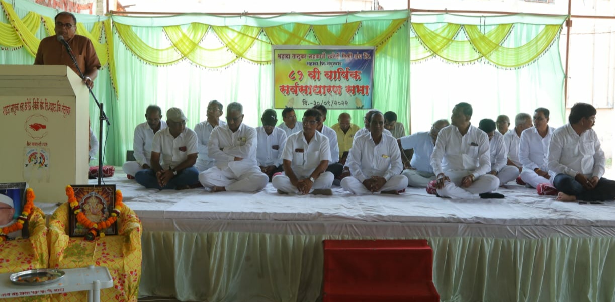 तालुका खरेदी विक्री संघाची 81वी वार्षिक सर्वसाधारण सभा शुक्रवारी संघाचे चेअरमन राजाराम तुकाराम पाटील यांच्या अध्यक्षतेखाली संपन्न झाली.यावेळी सातपुडा साखर कारखान्याचे अध्यक्ष दीपक पाटील यांची प्रमुख उपस्थिती होती. या सभेला शहादा पंचायत समितीचे माजी सभापती माधव जंगु पाटील, संघाचे माजी चेअरमन विजय विठ्ठल पाटील, माजी नगराध्यक्ष विजय दामू पाटील, दूध संघाचे चेअरमन रवींद्र रावल,दूध संघाचे माजी चेअरमन उध्दव रामदास पाटील, शहादा नगरपालिकेचे माजी गटप्रमुख प्रा.मकरंद पाटील, खरेदी विक्री संघाचे संचालक मंडळ, विविध संस्थांचे पदाधिकारी व संचालकांची प्रमुख उपस्थिती होती.