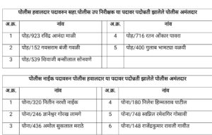 पोलीस नाईक पदावरून पोलीस हवालदार पदावर पदोन्नती झालेले पोलीस अमलदार