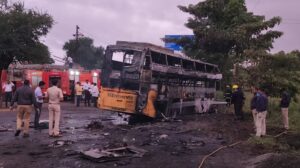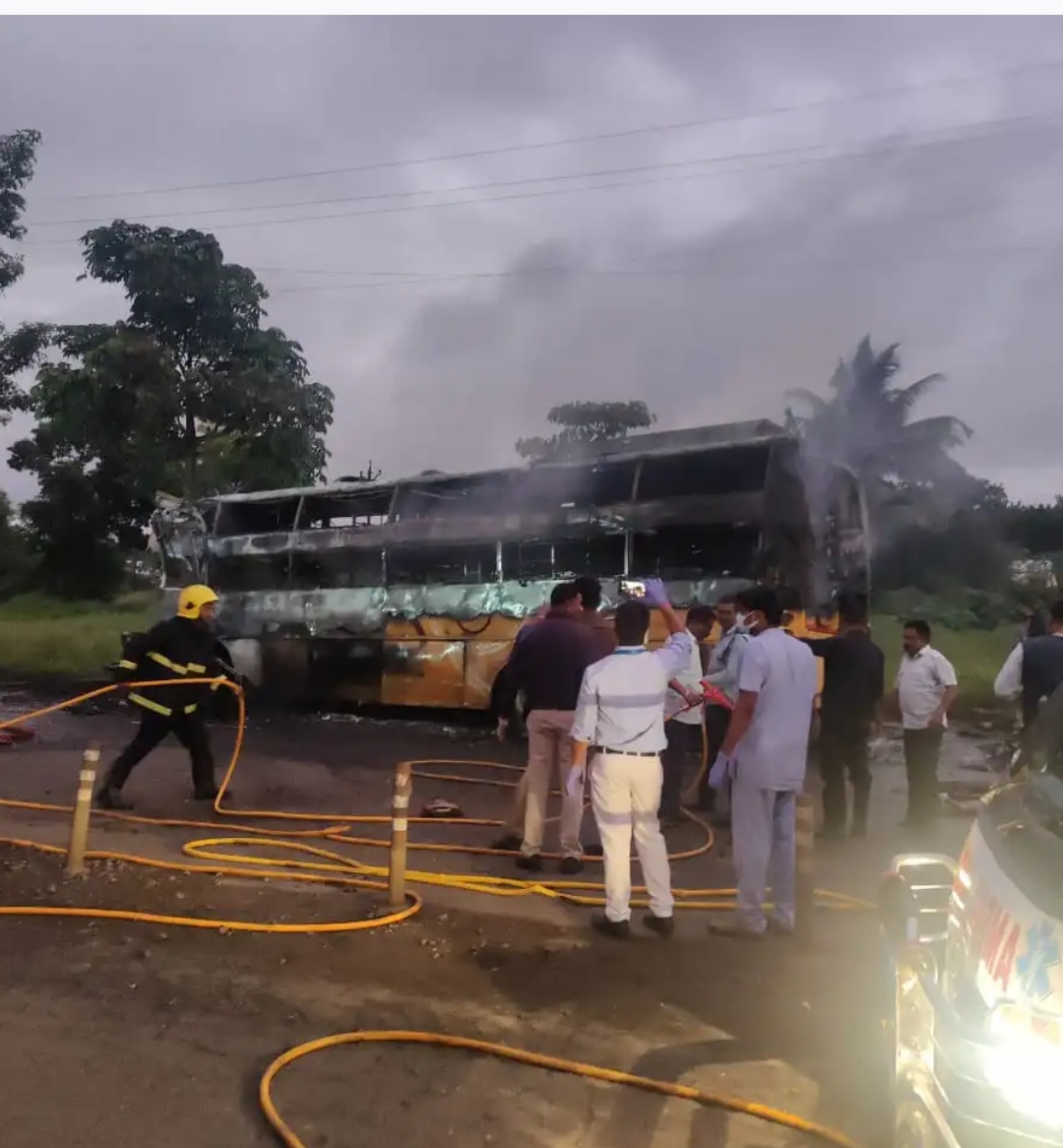 या बसमध्ये सुमारे ४० ते ५० प्रवासी होते. चितांमणी ट्रॅव्हल्सची बस यवतमाळ ते मुंबई जात होती. नाशिकमध्ये मिरची हॉटेल जवळ एका आयशर ट्रक आणि बसचा भीषण अपघात झाला. त्यानंतर अचानक बसला आग लागल्याने हा अपघात झाला.