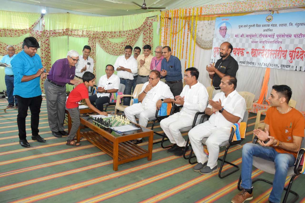 पूज्य साने गुरुजी विद्या प्रसारक मंडळाचे अध्यक्ष दीपक पाटील यांच्या जन्मदिवसानिमित्त आयोजित खान्देश स्तरीय बुद्धीबळ स्पर्धेत तीन गटात एकूण 153 स्पर्धक सहभागी झाले.यशस्वी स्पर्धकांना रोख पारितोषिक तसेच सहभाग प्रमाणपत्र वितरित करण्यात आले.