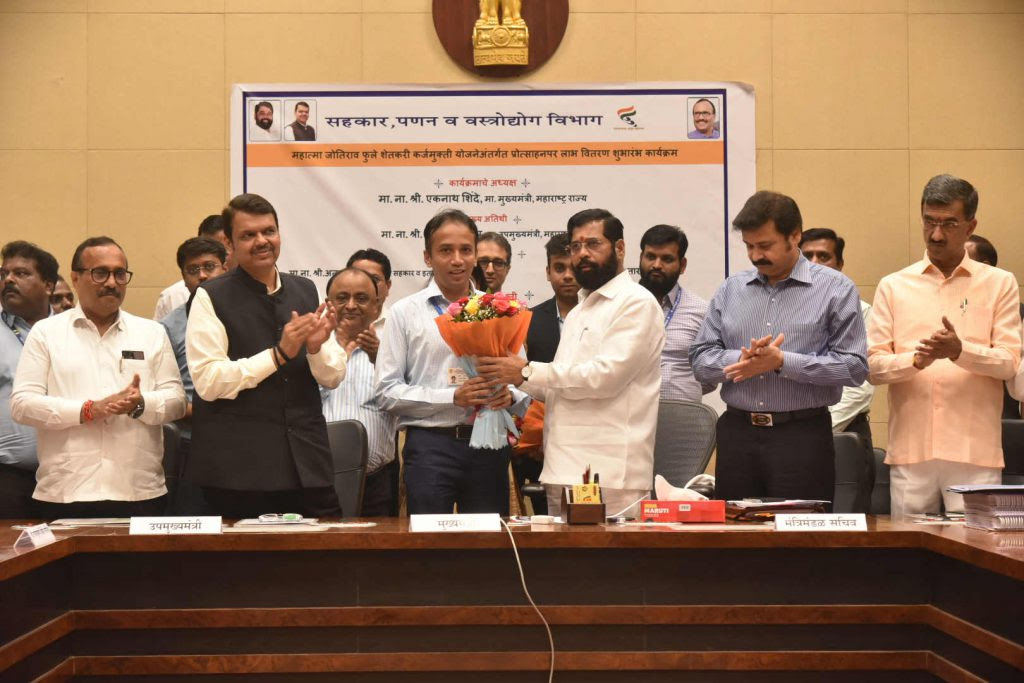 महात्मा जोतिराव फुले शेतकरी कर्जमुक्ती योजनेतून अल्प मुदतीच्या पीक कर्जाची नियमितपणे परतफेड करणाऱ्या शेतकऱ्यांना प्रोत्साहनपर लाभ देणाऱ्या योजनेच्या शुभारंभ कार्यक्रमास सहकार मंत्री अतुल सावे, महसूलमंत्री राधाकृष्ण विखे – पाटील, ग्रामविकास मंत्री गिरीष महाजन, कृषीमंत्री अब्दुल सत्तार, बंदरे व खनिकर्म मंत्री दादाजी भुसे, उद्योगमंत्री उदय सामंत, उत्पादन शुल्क मंत्री शंभूराज देसाई, आरोग्यमंत्री डॉ. तानाजी सावंत, शिक्षण मंत्री दीपक केसरकर, मुख्य सचिव मनुकुमार श्रीवास्तव आदी मान्यवर उपस्थित होते. सर्व जिल्हाधिकारी, लाभार्थी शेतकरी दूरदृश्यप्रणालीच्या माध्यमातून सहभागी झाले होते.