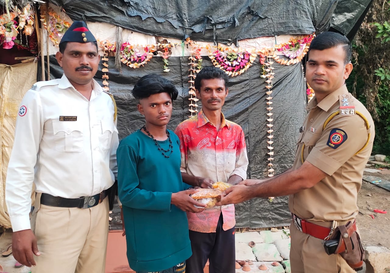 गरजूंची दिवाळी आनंददायी होण्यासाठी येथील पोलीस प्रशासनातर्फे गोरगरीबाना फराळ वाटप करण्यात आले.