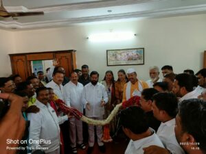पालिकेच्या नुतन इमारतीच्या उद्घाटना आदी ते पालकमंत्र्यांच्या घरी जाणार होते. मात्र येण्यास उशिर झाल्याने मेळाव्यानंतर त्यांनी पालकमंत्र्यांच्या घरी भेट दिली. यावेळी कृषीमंत्री ना.अब्दुल सत्तार, पाणीपुरवठा मंत्री ना. गुलाबराव पाटील, बंदरे खनिज कल्याणमंत्री ना.दादाजी भुसे, खा.डॉ.हिना गावीत, जि.प.अध्यक्षा डॉ.सुप्रिया गावीत, आ.मंजुळा गावीत, माजी आ. शिरीष चौधरी, जि.प. उपाध्यक्ष सुहास नाईक, जि.प.सभापती संगिता भरत गावीत आदी मान्यवर यावेळी उपस्थित होते.