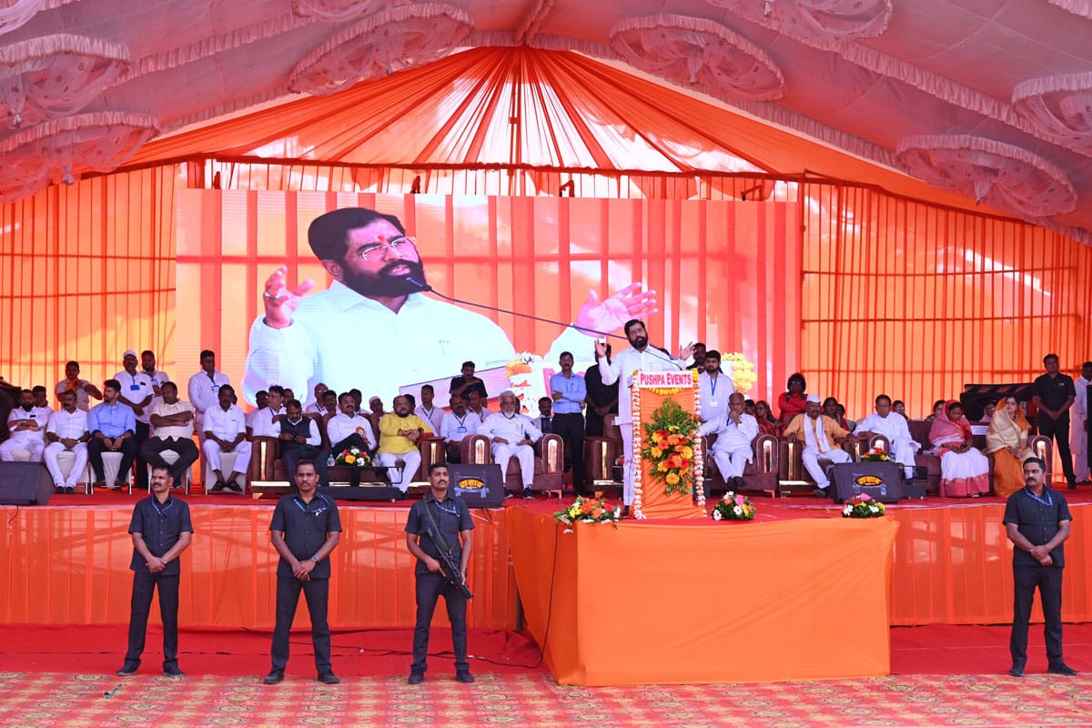 यावेळी व्यासपीठावर मंत्री गुलाबराव पाटील, दादाजी भुसे, अब्दुल सत्तार, आ.मंजुळा गावित, आ.चिमणराव पाटील, आ.किशोर पाटील, किरसिंग वसावे, विजयसिंग पराडके आदी उपस्थित होते. यापुढे बोलतांना मुख्यमंत्री एकनाथ शिंदे म्हणाले,  गेल्या अडीच ते तीन महिन्यात गेल्या अडीच वर्षात थांबलेल्या विकासाला, रखडलेल्या प्रकल्पांना गती देण्याचे काम केले आहे. तीन महिन्यात ७२ मोठे निर्णय घेतले आहेत. जल सिंचनाच्या प्रकल्पांना गती देण्याचे काम करत आहोत. शेतकऱ्यांना केंद्रबिंदू मानून काम सुरु आहे.