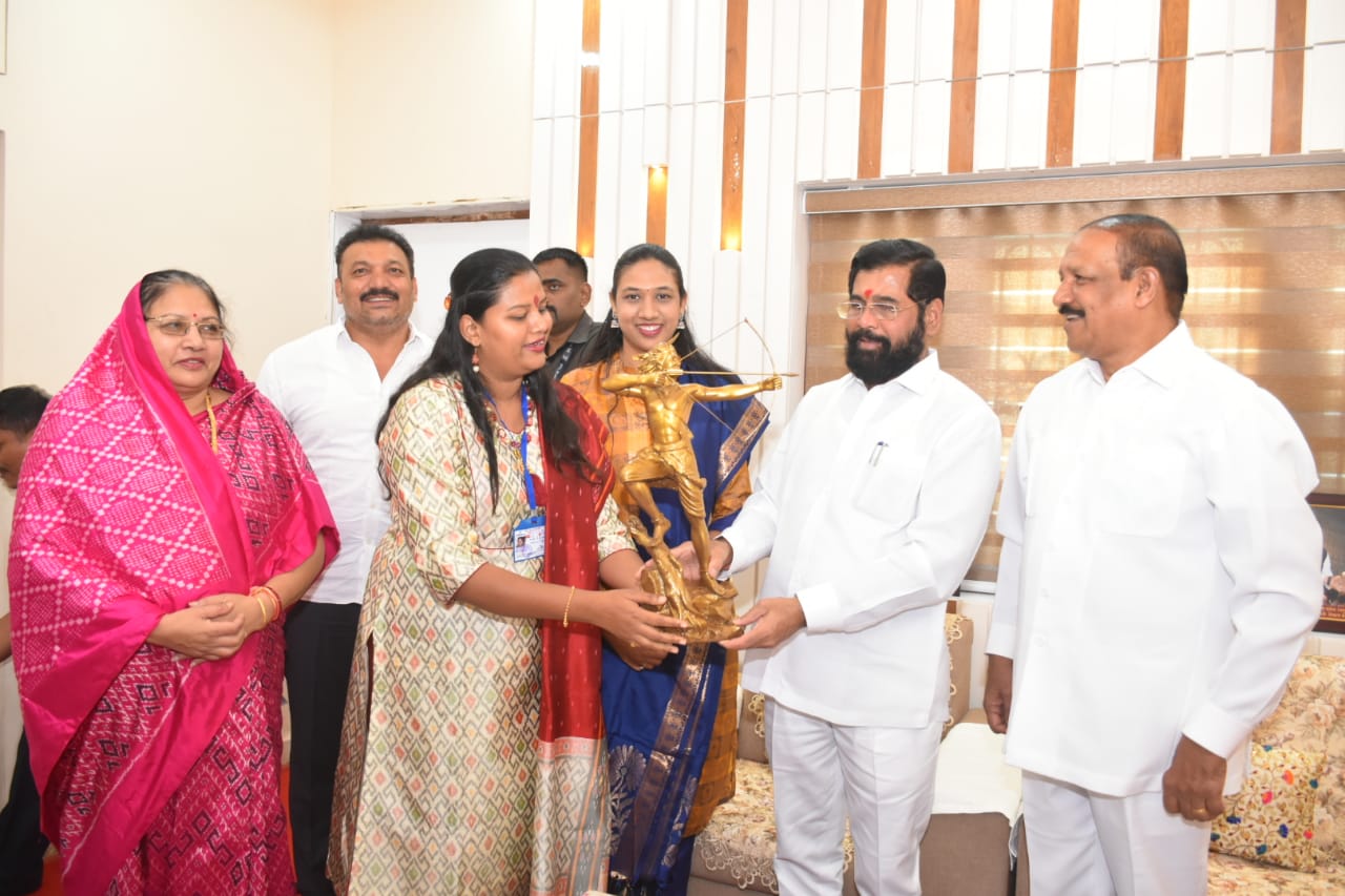 आदिवासींचे श्रद्धास्थान एकलव्य यांची तसेच आदिवासी स्वातंत्र्य सेनानी वीर बिरसा मुंडा यांची मूर्ती भेट देऊन आदिवासी विकास मंत्री तथा पालकमंत्री ना. डॉ. विजयकुमार गावित, भारतीय जनता पार्टीच्या राष्ट्रीय प्रवक्ता डॉ. हिना गावित, जिल्हा परिषदेच्या अध्यक्षा डॉ. सुप्रिया गावित यांनी महाराष्ट्राचे मुख्यमंत्री एकनाथराव शिंदे यांचे अत्यंत आगळ्यावेगळ्या पद्धतीने स्वागत आणि सत्कार केला.