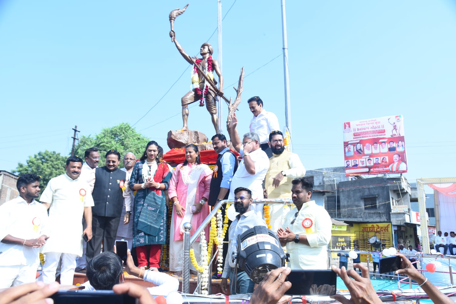 तळोदा शहरातील बस स्थानक जवळील बिरसा मुंडा चौक येथे भगवान बिरसा मुंडा यांच्या जयंतीचे औचित्य साधत बीरसा मुंडा यांच्या पूर्णाकृती पुतळ्याचे अनावरण ग्रामविकास मंत्री ना.गिरीश महाजन यांच्या प्रमुख उपस्थित करण्यात आले.