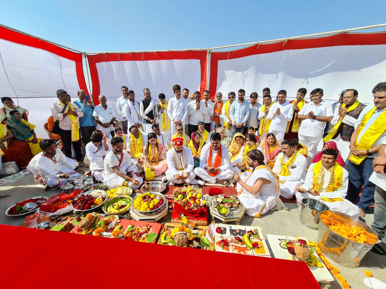 स्वामी लोकेशानांद महाराज यांच्या हस्ते आज लोणखेडा येथील विष्णुपुरम येथे मंदिराच्या प्रथम शिलेचे पूजन शास्त्रोक्त पद्धतीने संपन्न झाले यावेळी मध्य प्रदेशाचे कृषिमंत्री कमल पटेल ,खासदार रक्षा खडसे पूज्य साने गुरुजी विद्या प्रसारक मंडळाचे चेअरमन दीपक पाटील एडवोकेट ललिता पाटील माजी आमदार स्मिता वाघ, जिल्हा परिषद सदस्य जयश्री पाटील हेमलता शितोळे याच्यासह विविध क्षेत्रातील मान्यवर उपस्थित होते.