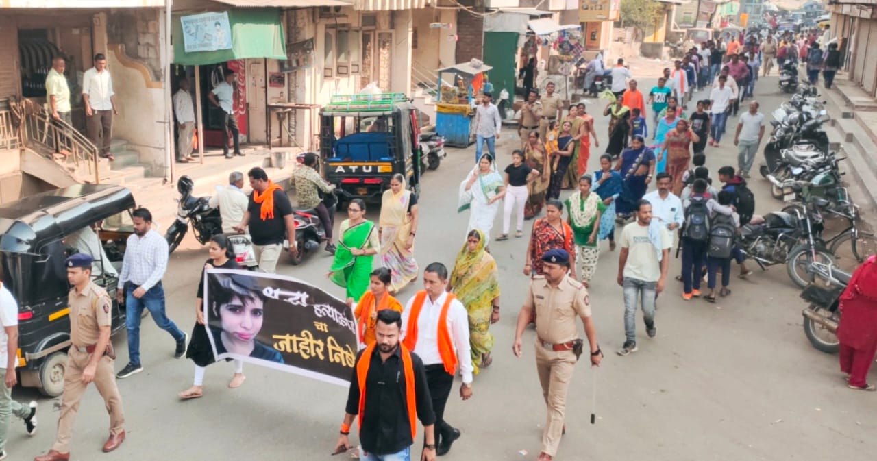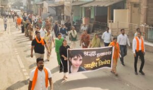 दिल्ली येथे अत्यंत क्रूरपणे घडलेल्या श्रध्दा वालकर हत्याकांड प्रकरणाचा निषेधार्त सकाळी दहाला शहरातील गणपती मंदीरा पासुन समस्थ हिंदु समाजातर्फे मुक् मोर्चा काढण्यात आला.