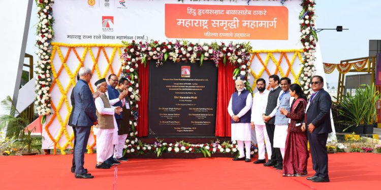 हिंदुहृदयसम्राट बाळासाहेब ठाकरे महाराष्ट्र समृध्दी महामार्गाच्या कोनशिलेचे अनावरण प्रधानमंत्री नरेंद्र मोदी यांच्या हस्ते झाले. महामार्गाच्या नागपूर येथील झिरो पॉईंट पासून दहा किलोमीटर अंतरावर असलेल्या टोल प्लाझा येथे अनावरणाचा हा कार्यक्रम झाला.