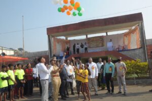 प्रारंभी, मान्यवराचे स्वांगत आदिवासी नृत्य करुन करण्यात आले. यानंतर पोलीस अधिक्षक श्री.पाटील यांनी मशाल प्रज्वलीत व दिप प्रज्वलीत करुन क्रीडा स्पर्धेचे उद्घाटन करण्यात आले. यावेळी जिल्हा महिला आणि बाल विकास विभाग, नंदुरबार अंतर्गत केअर फॉर यु, पुणे या संस्थेमार्फत आयोजित सामान्य ज्ञान स्पर्धेंत रुखमाबाई बालिकाश्रम सोरापाडा, ता.अक्कलकुवा येथील बालगृहातील विद्यार्थिंनीने सांघिक प्रथम क्रमांक मिळविल्याबद्दल त्यांना मिळालेले सुवर्ण पदक, लॅपटॉप, घडयाळ व प्रमाणपत्र देवून त्यांचा मान्यवराच्या हस्ते सत्कांर करण्यात आला. यावेळी संस्था चालक संदीप पाटील, अधिक्षिका कविता वळवी उपस्थित होत्या.