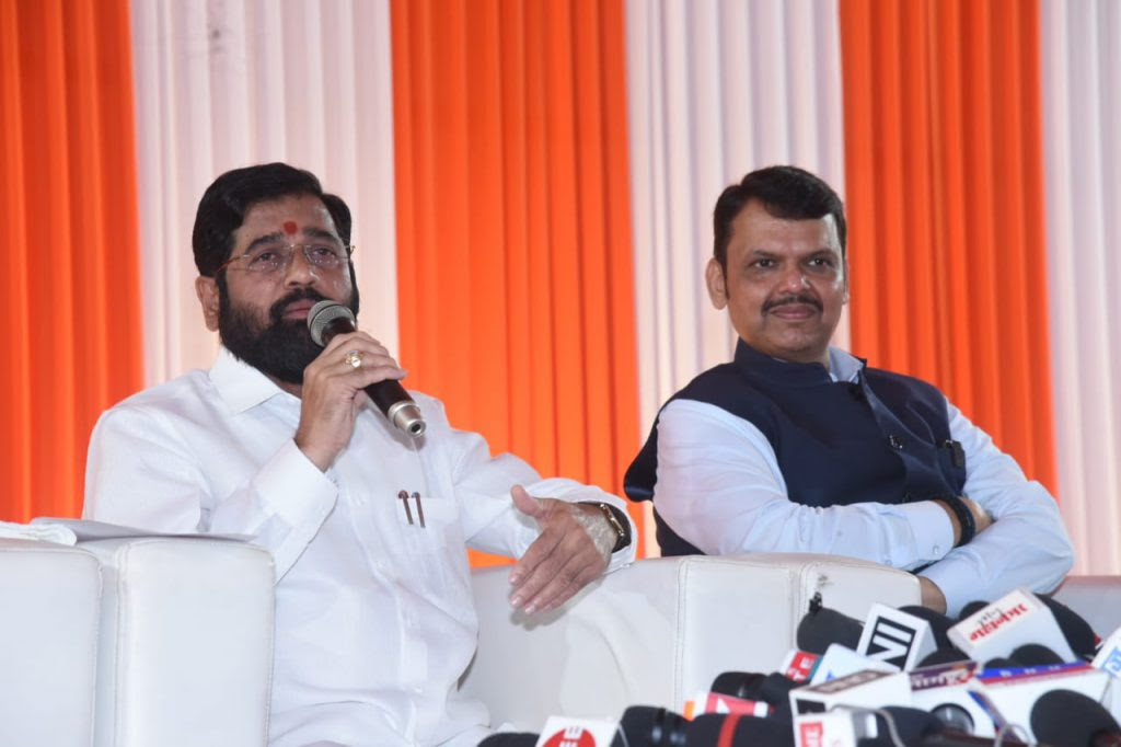 मुख्यमंत्री श्री शिंदे यांच्या रामगिरी शासकीय निवासस्थानी आज ही पत्रकार परिषद झाली. पत्रकार परिषदेत उपमुख्यमंत्री श्री. फडणवीस यांच्यासह मंत्री सर्वश्री चंद्रकांत पाटील, सुधीर मुनगंटीवार, गिरीश महाजन, संजय राठोड, शंभूराज देसाई, विजयकुमार गावीत, तानाजी सावंत, सुरेश खाडे, अतुल सावे, रवींद्र चव्हाण उपस्थित होते.