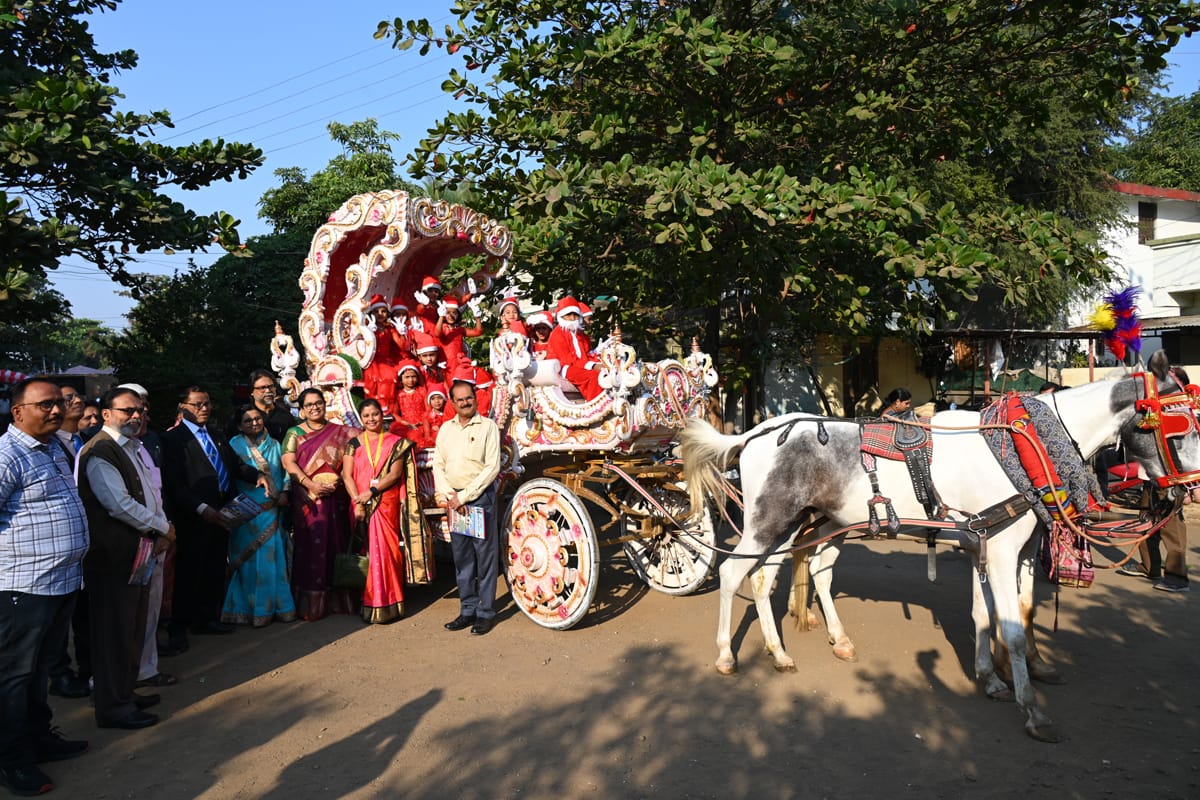 नंदुरबार येथील मिशन मराठी प्राथमिक शाळेत नाताळनिमित्त घोडा गाडीसह रॅली कडण्यात आली.